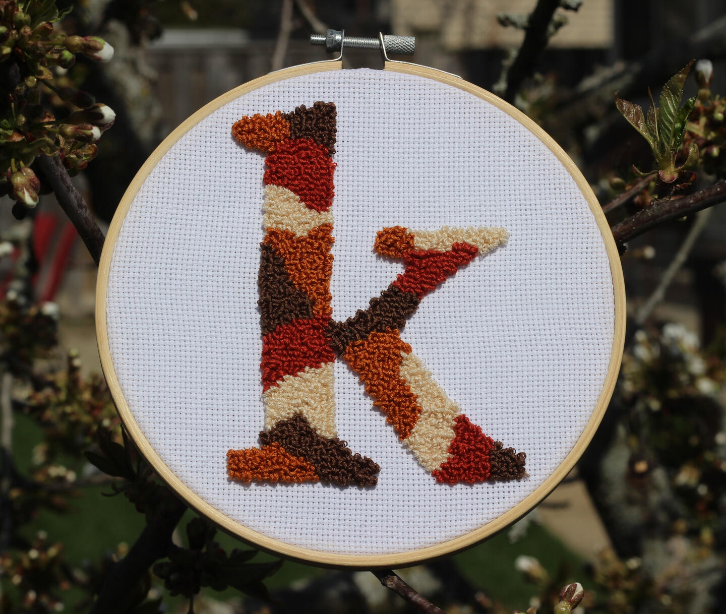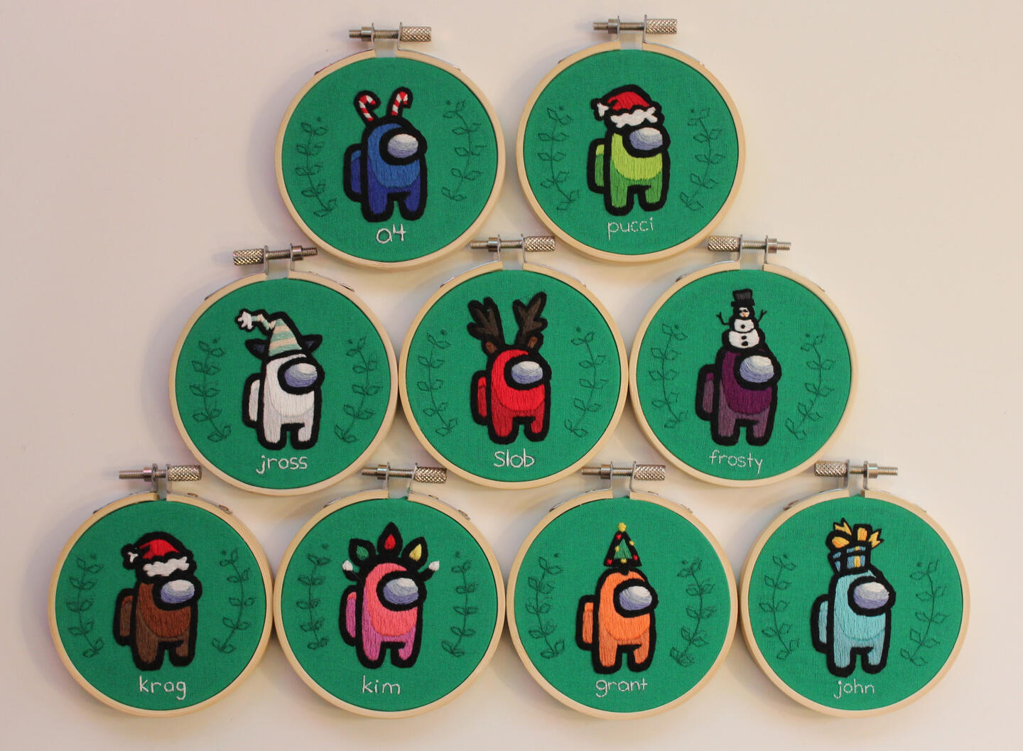 Bamboo hoops range from 4 inches to 7 inches in diameter. Embroideries can also be designed to be hung in square or rectangle frames.